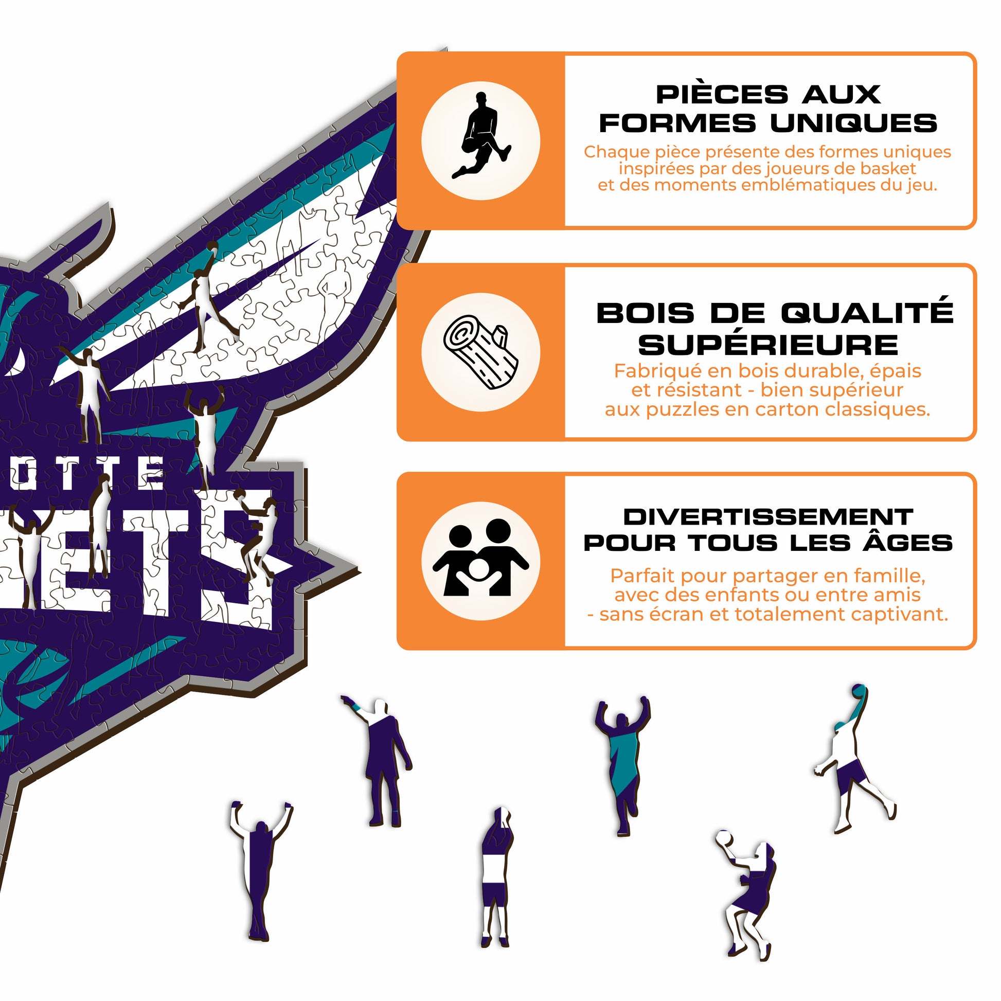 ✓ 1x Puzzle Officiel en Bois - Logo des Charlotte Hornets™