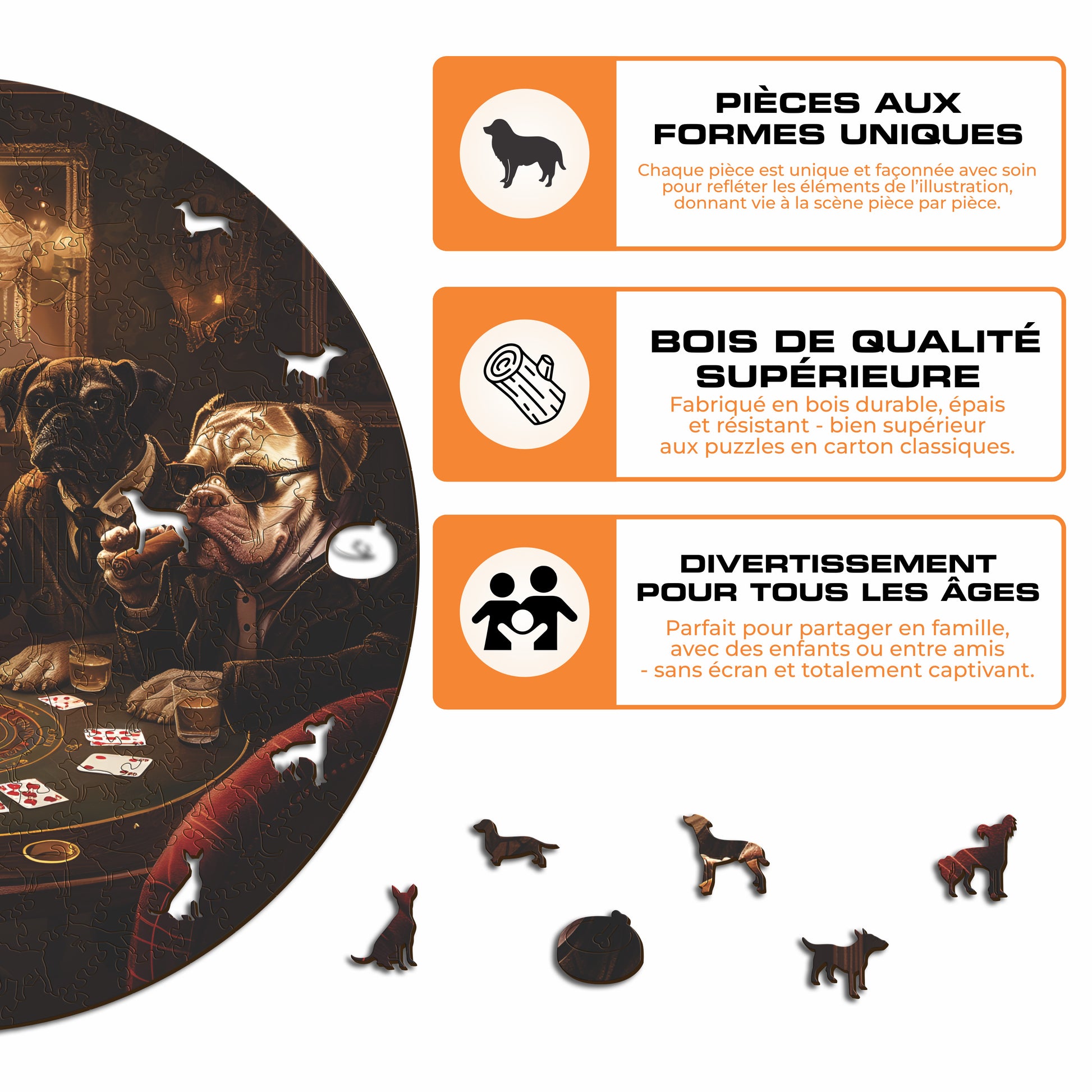 ✓ 1x Puzzle en Bois - Chiens Jouant au Poker