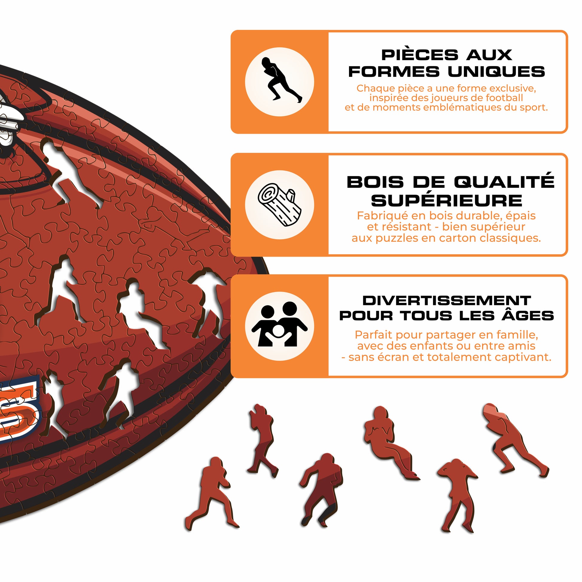 ✓ 1x Football Denver Broncos™ - Puzzle Officiel en Bois NFL