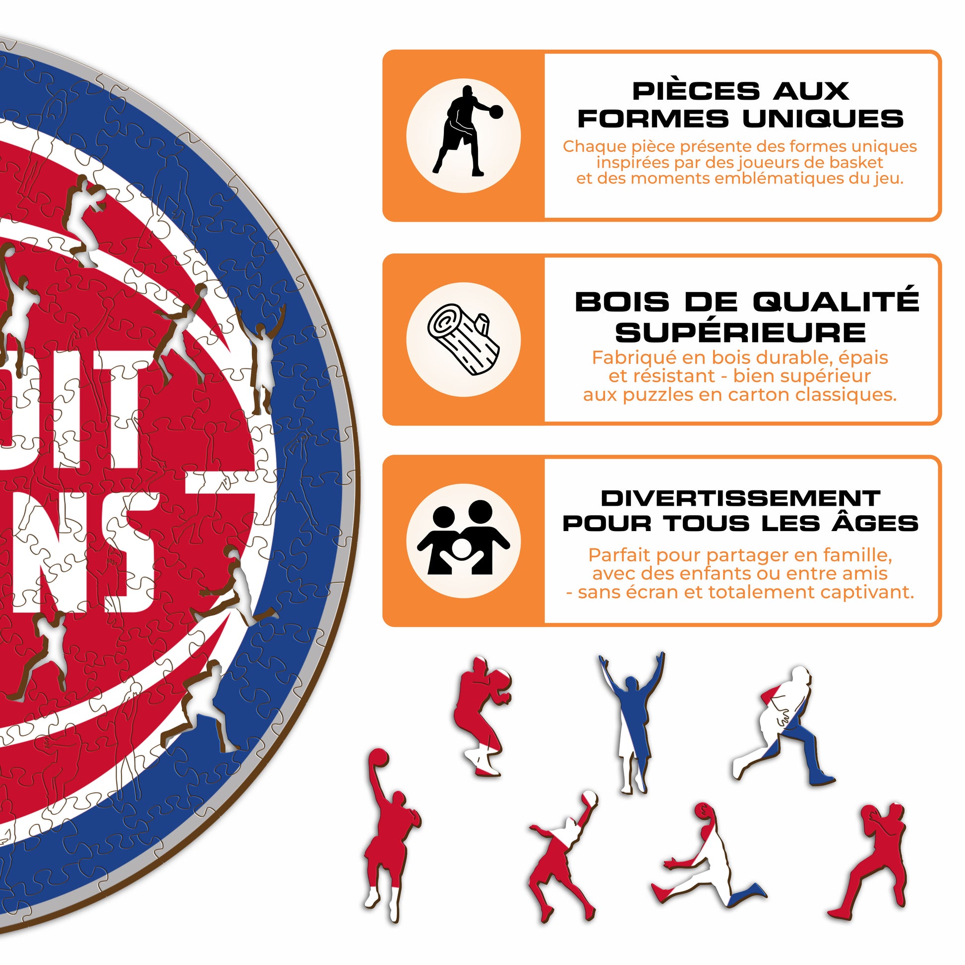 ✓ 1x Puzzle Officiel en Bois - Logo des Detroit Pistons™