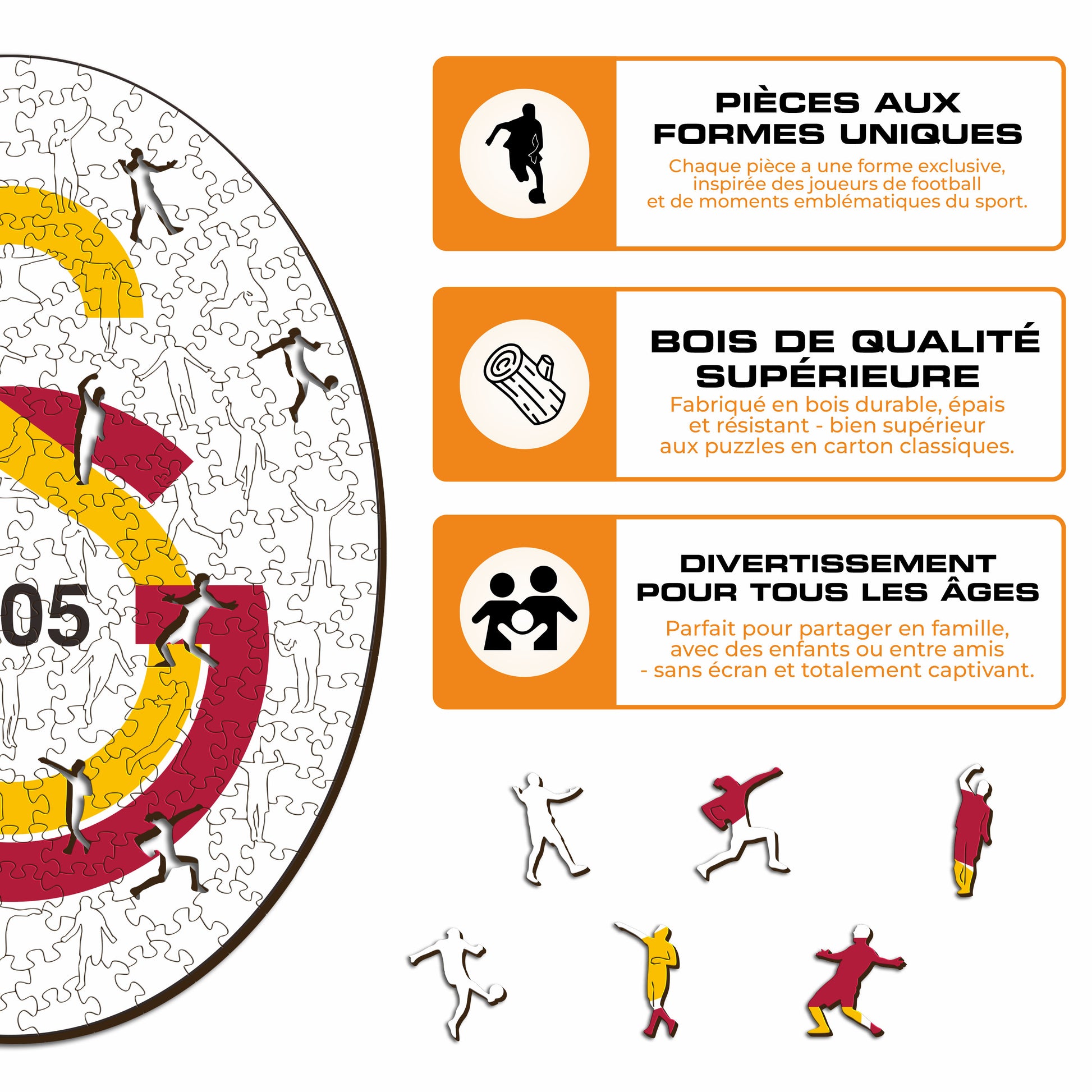 ✓ Chaque pièce du puzzle a une forme unique représentant des éléments liés au football et aux actes emblématiques des joueurs.