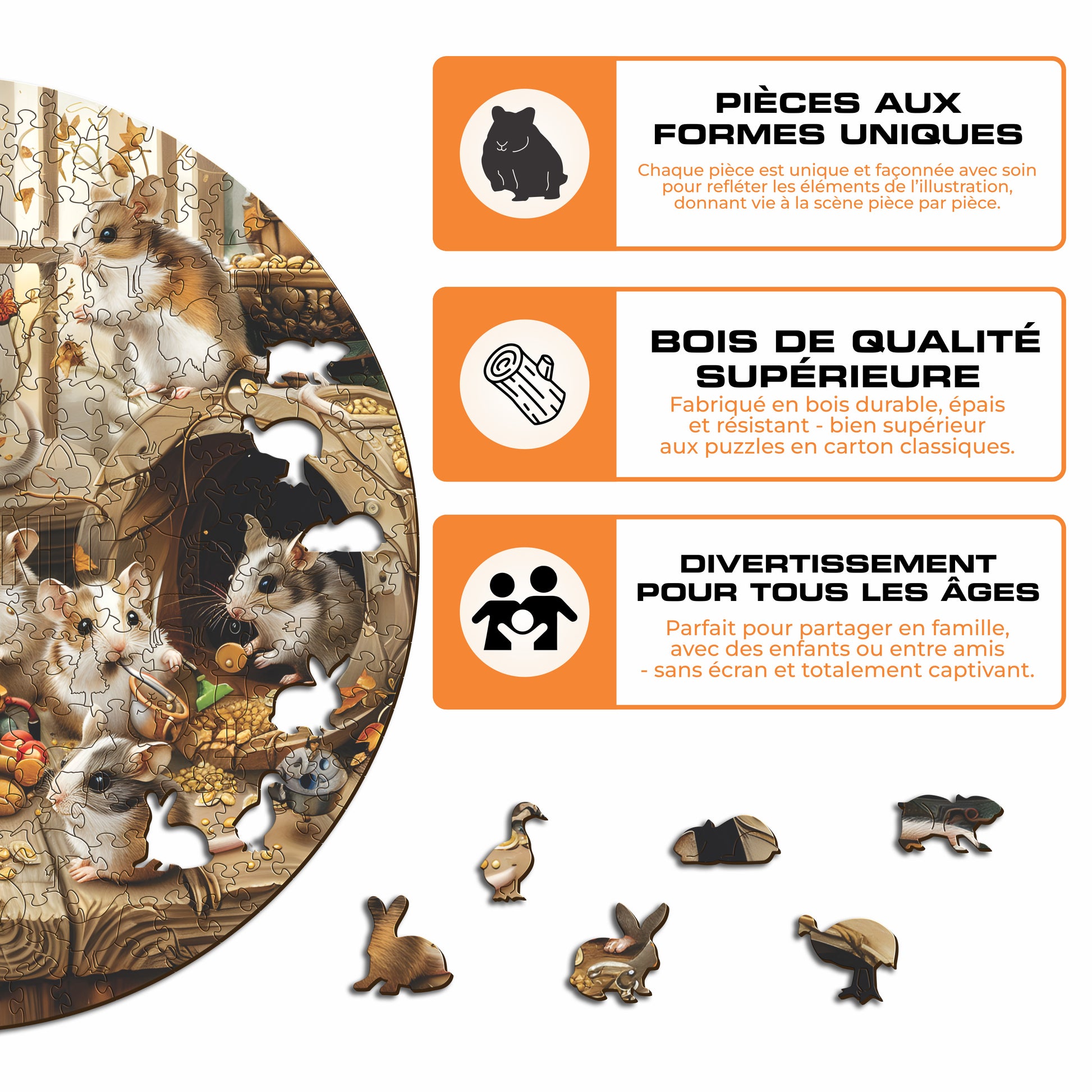 ✓ 1x Puzzle en Bois - Hamsters Curieux