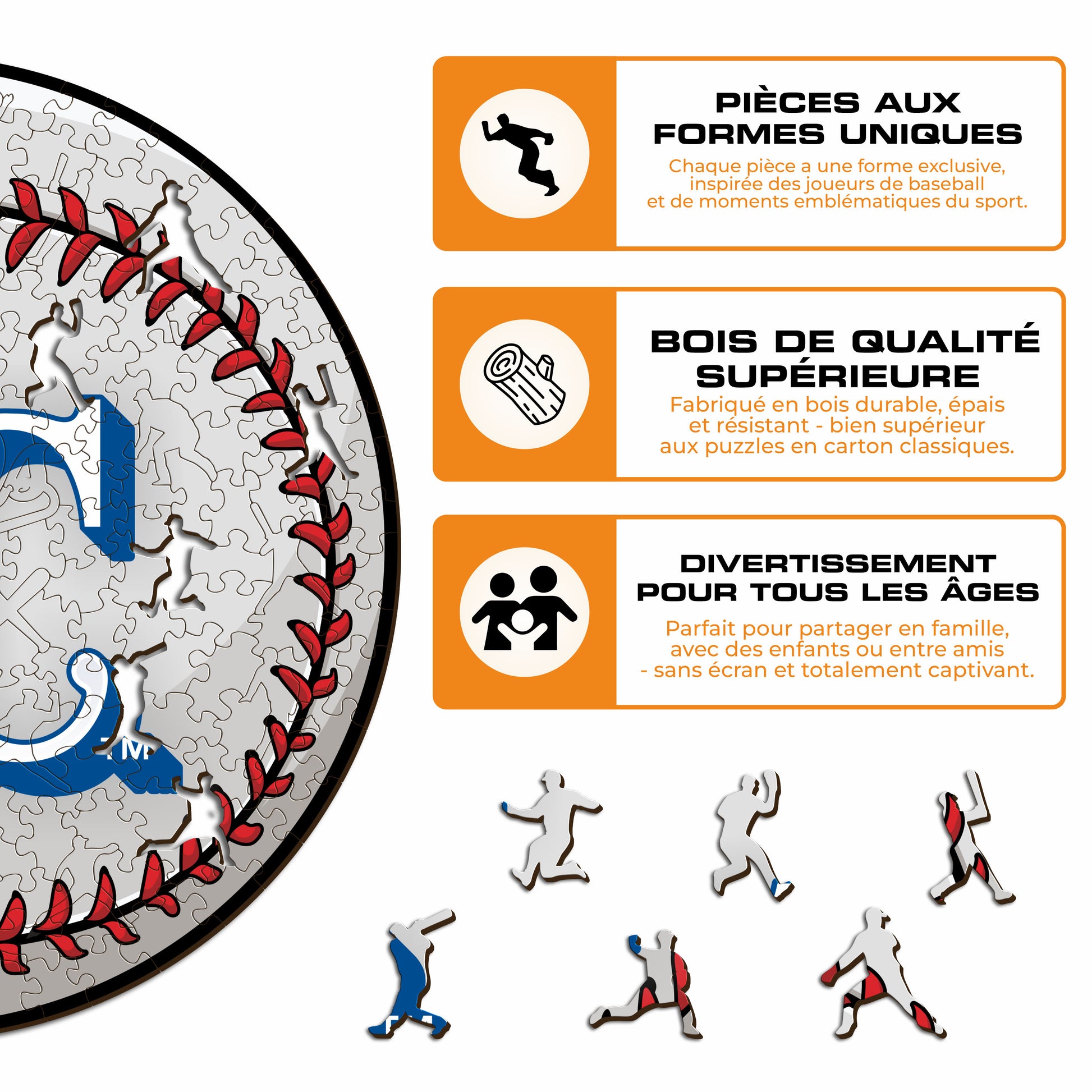 ✓ Chaque pièce du puzzle a une forme unique représentant des éléments liés au baseball et aux actes emblématiques des joueurs.