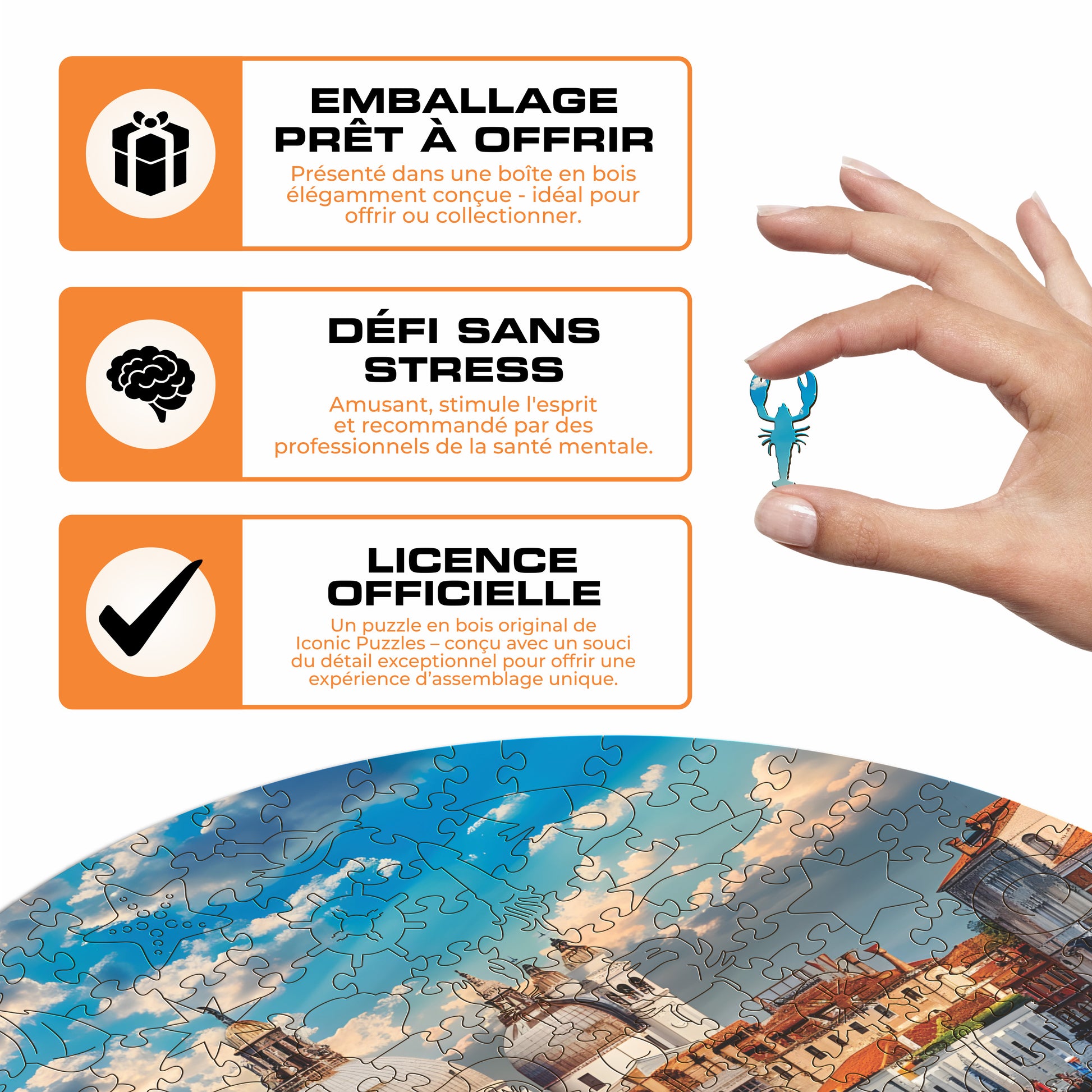 ✓ Chaque pièce du puzzle a une forme unique qui représente des éléments liés à l'image du puzzle.