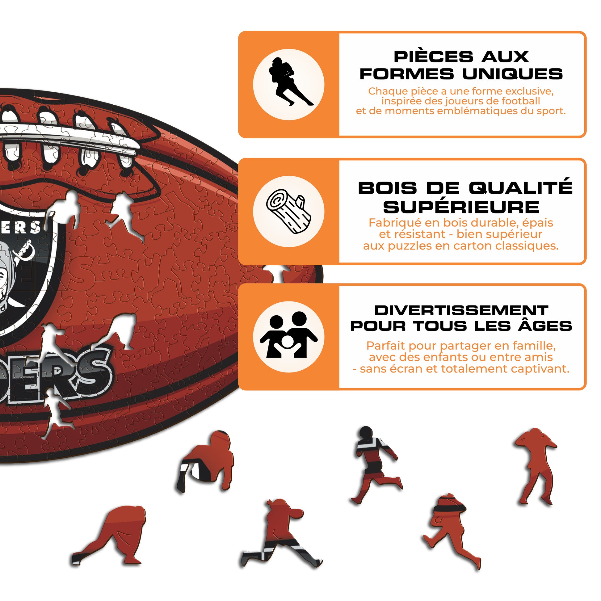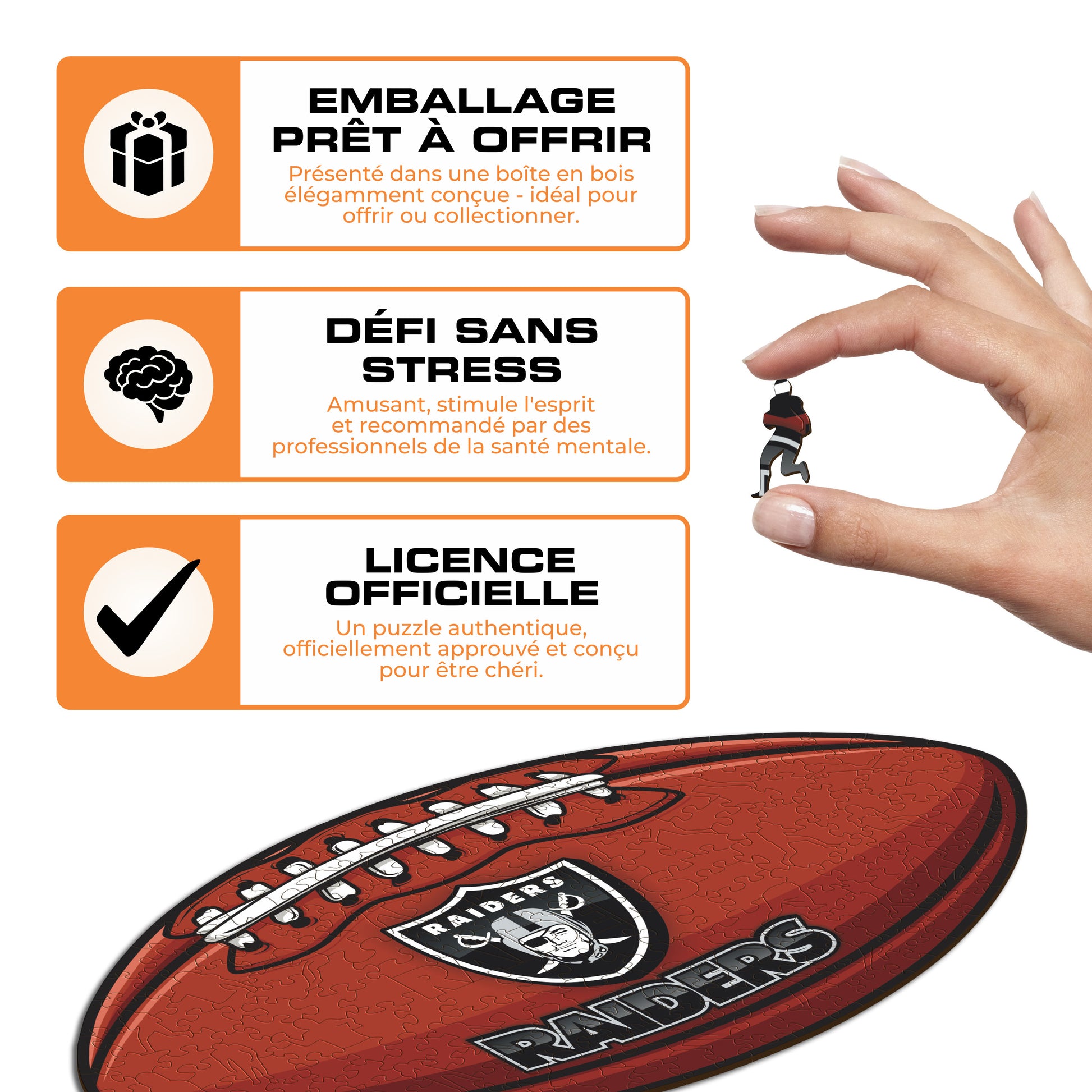 ✓ 1x Football Las Vegas Raiders™ - Puzzle Officiel en Bois NFL