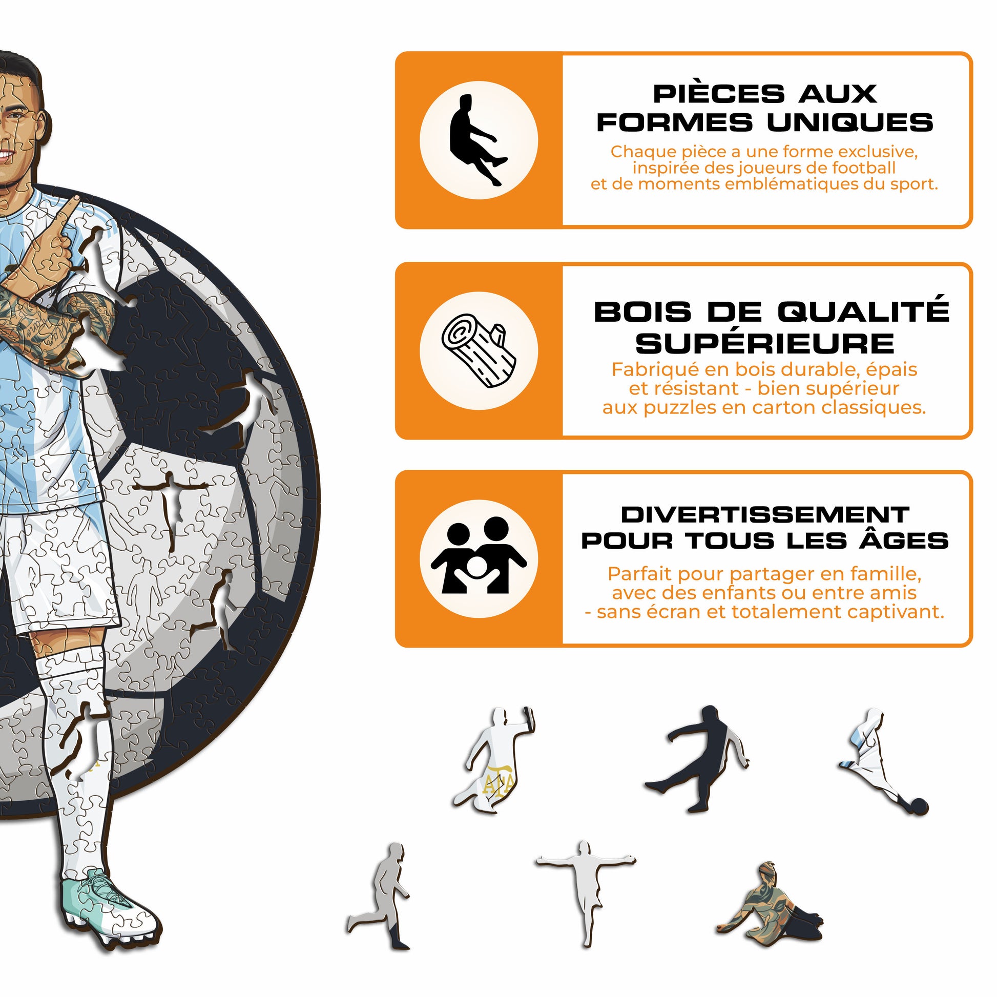 ✓ Chaque pièce du puzzle a une forme unique représentant des éléments liés au football et aux actions emblématiques des joueurs.