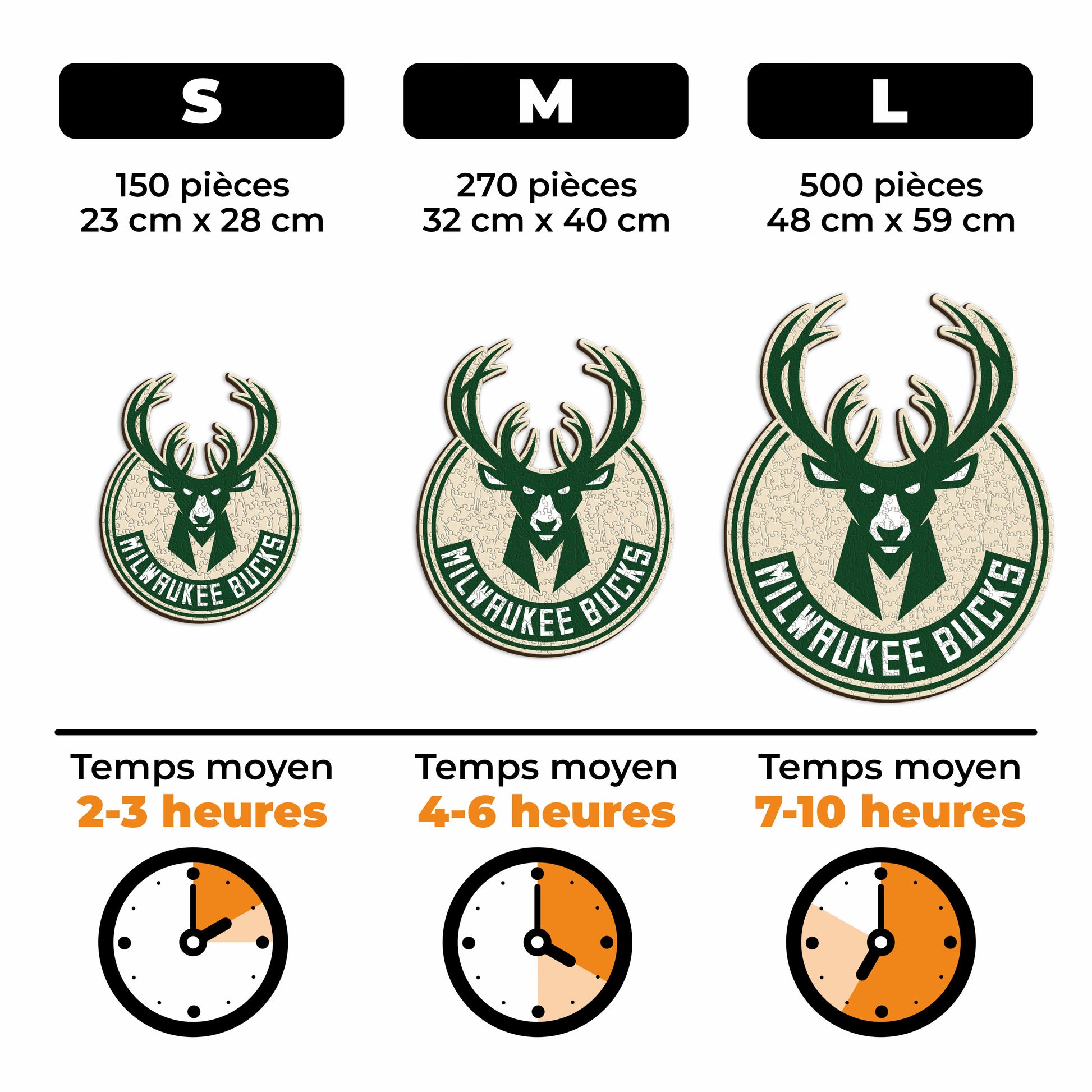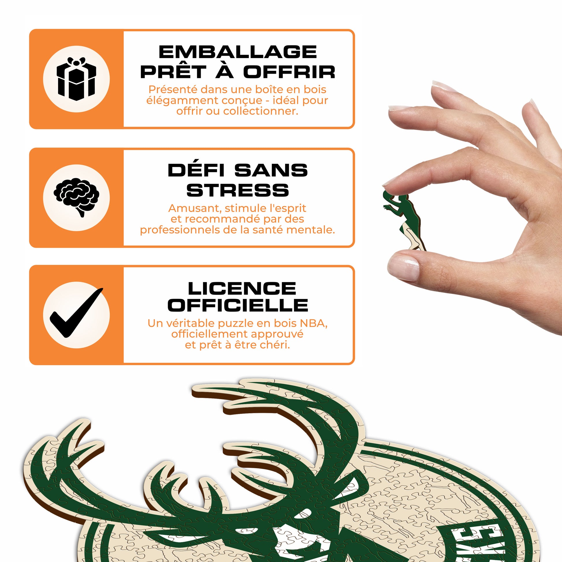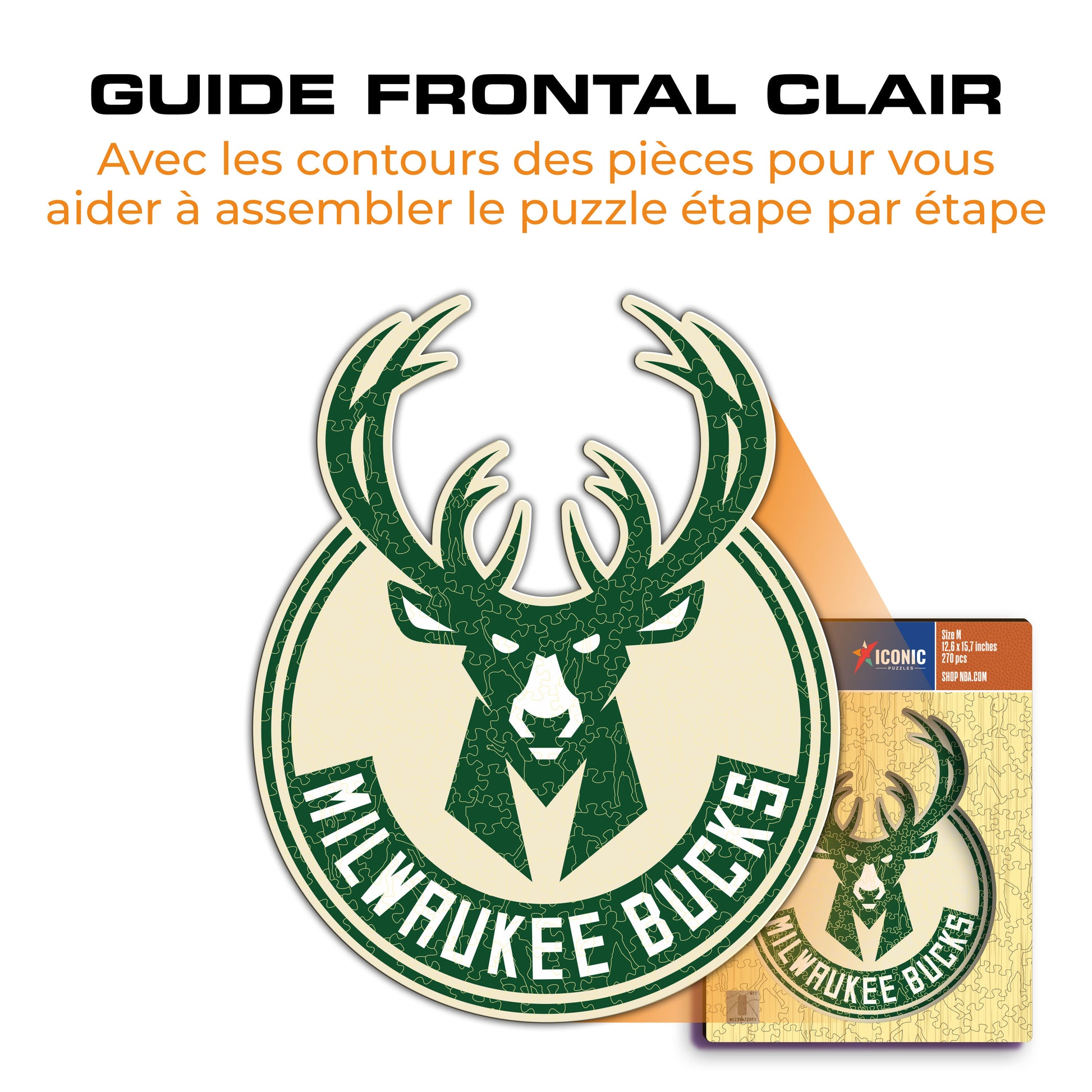✓ 1x Puzzle Officiel en Bois - Logo des Milwaukee Bucks®