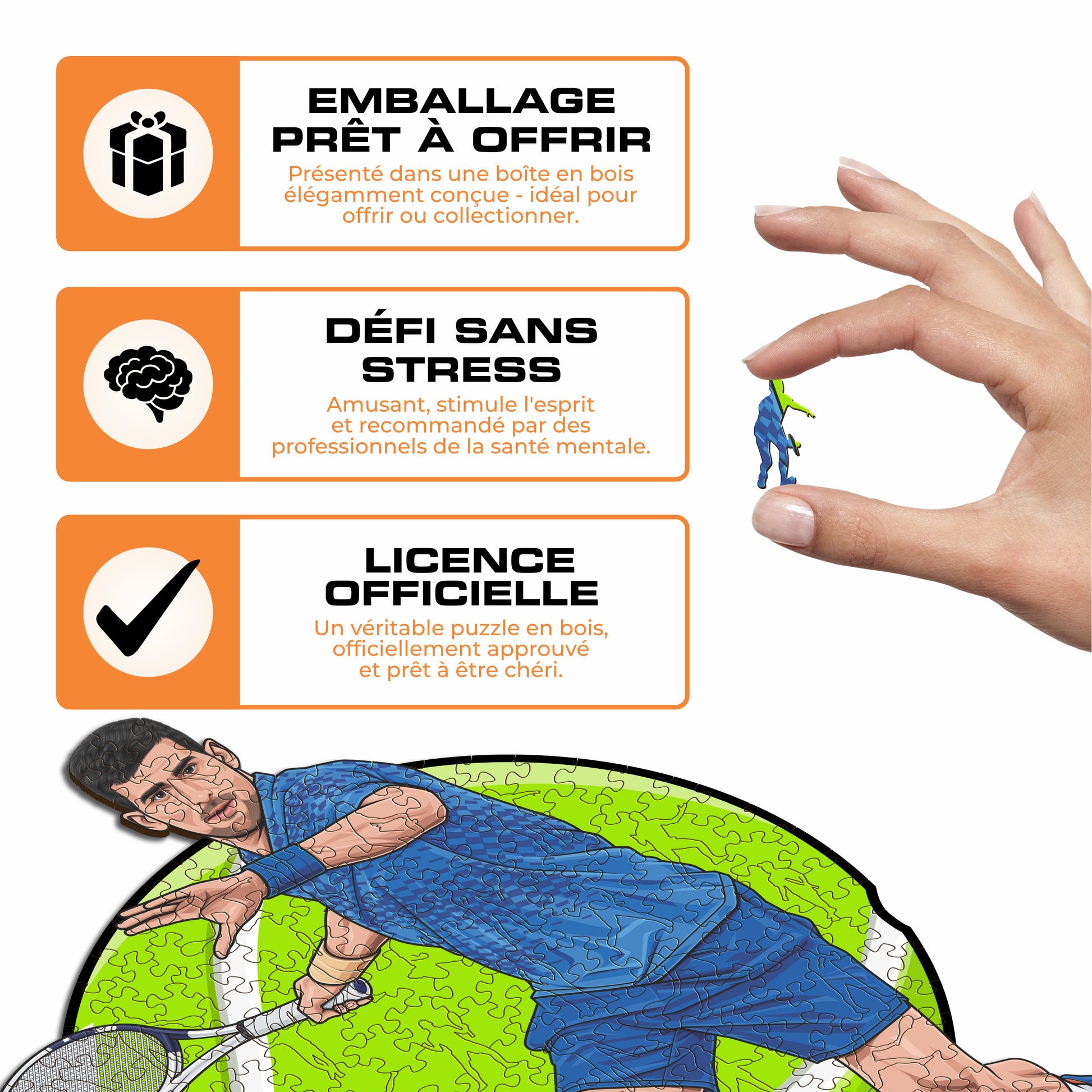 ✓ 1x Puzzle Officiel en Bois - Novak Djokovic
