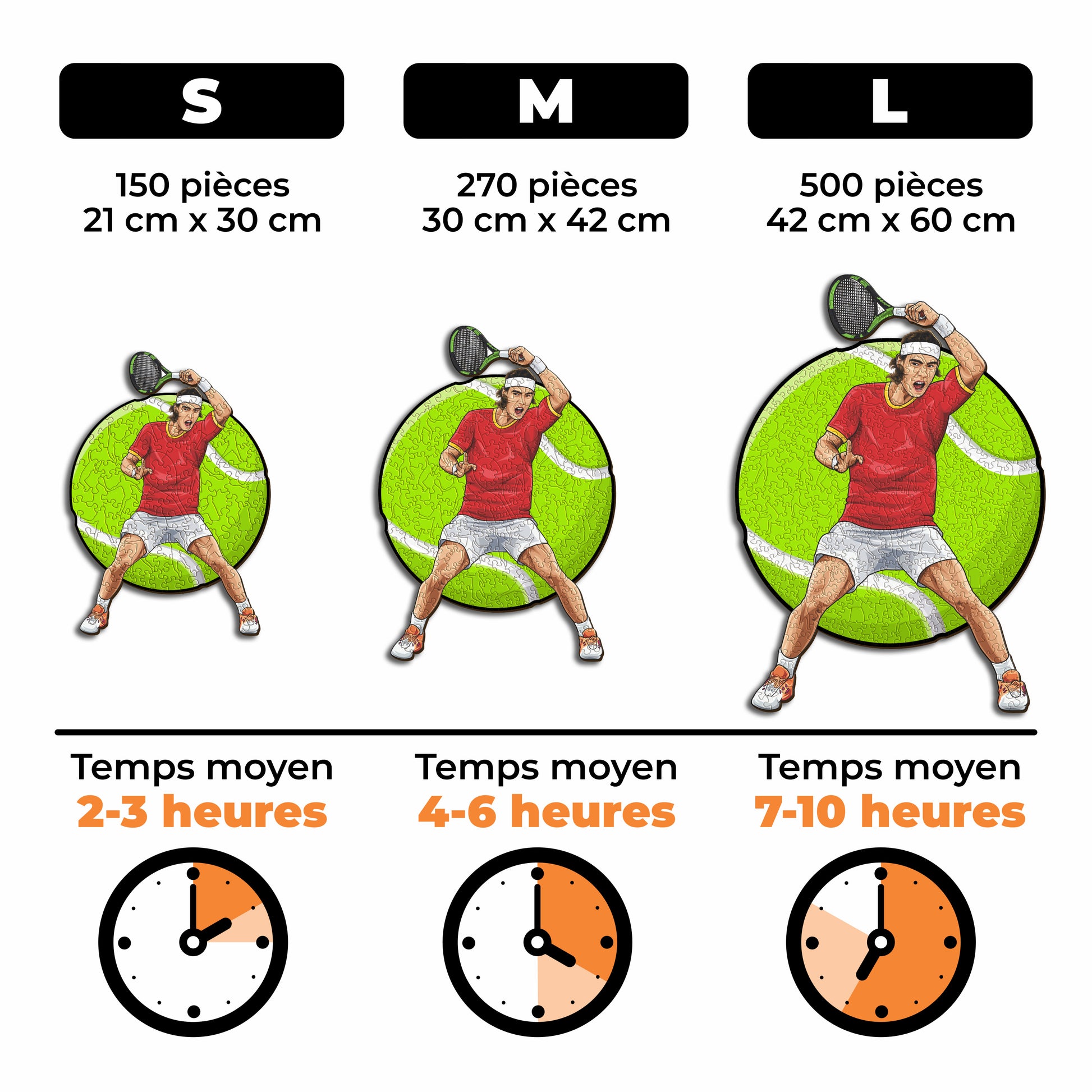 ✓ Chaque pièce du puzzle a une forme unique représentant des éléments liés au tennis et aux actions emblématiques des joueurs.