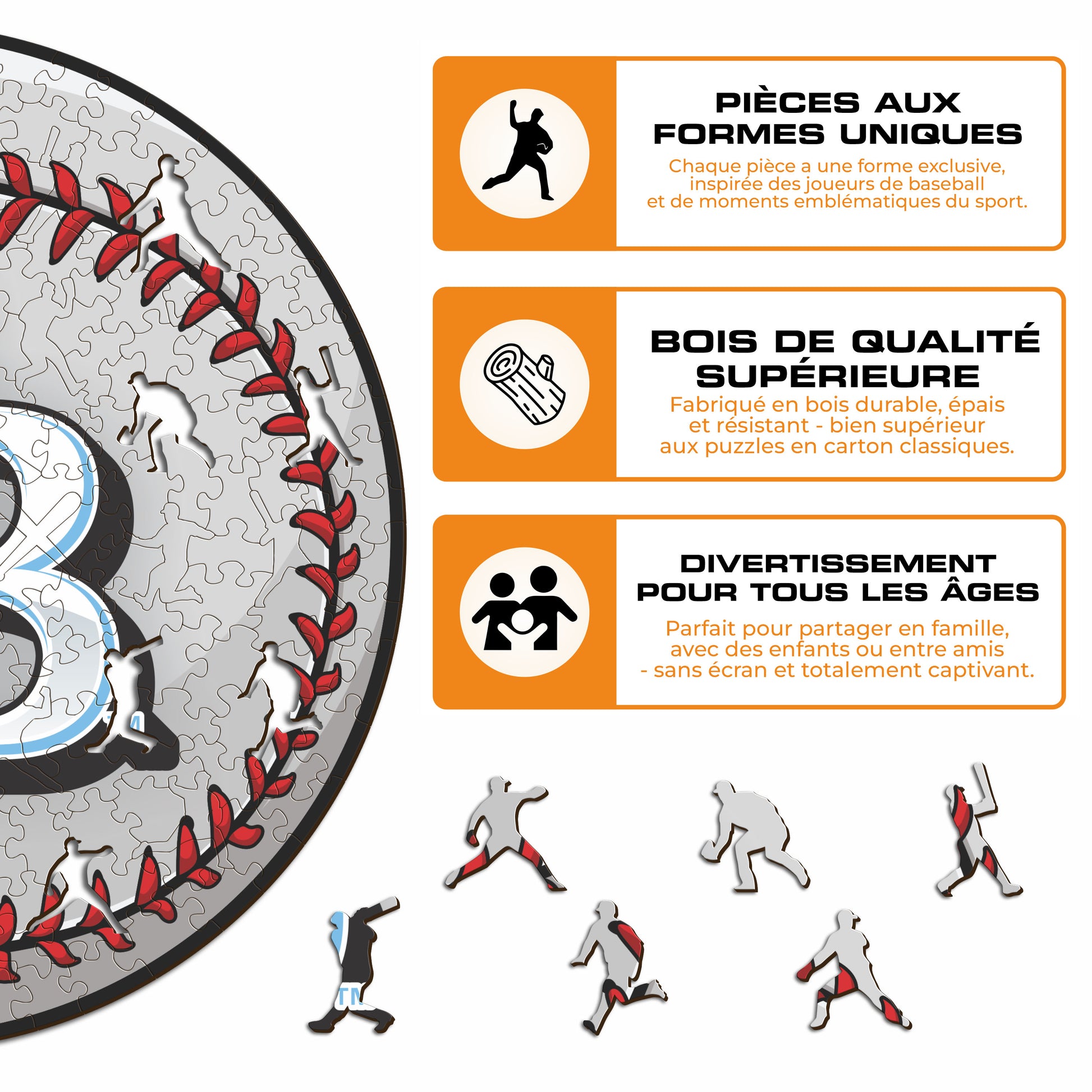 ✓ Chaque pièce du puzzle a une forme unique représentant des éléments liés au baseball et aux actes emblématiques des joueurs.