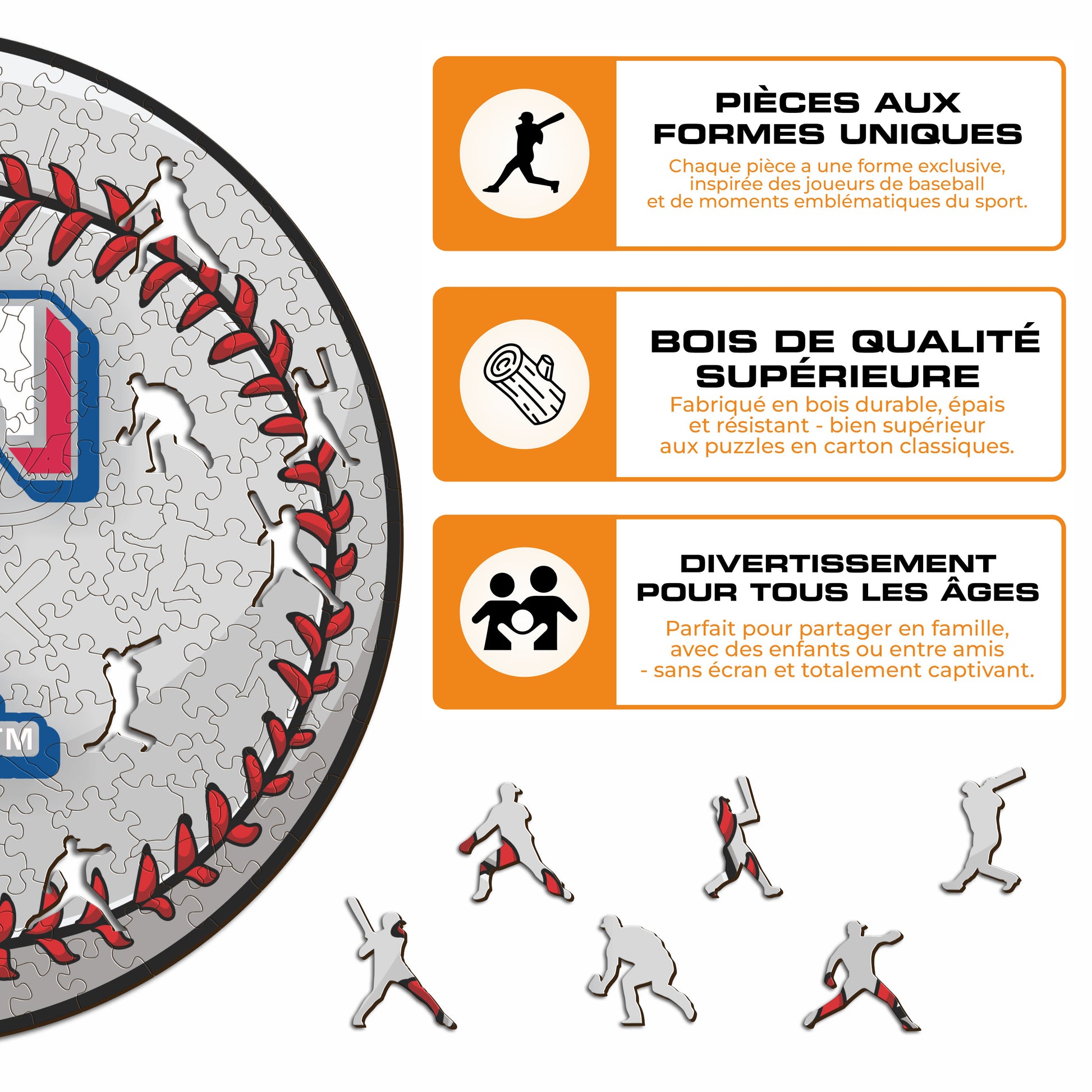 ✓ Chaque pièce du puzzle a une forme unique représentant des éléments liés au baseball et aux actes emblématiques des joueurs.